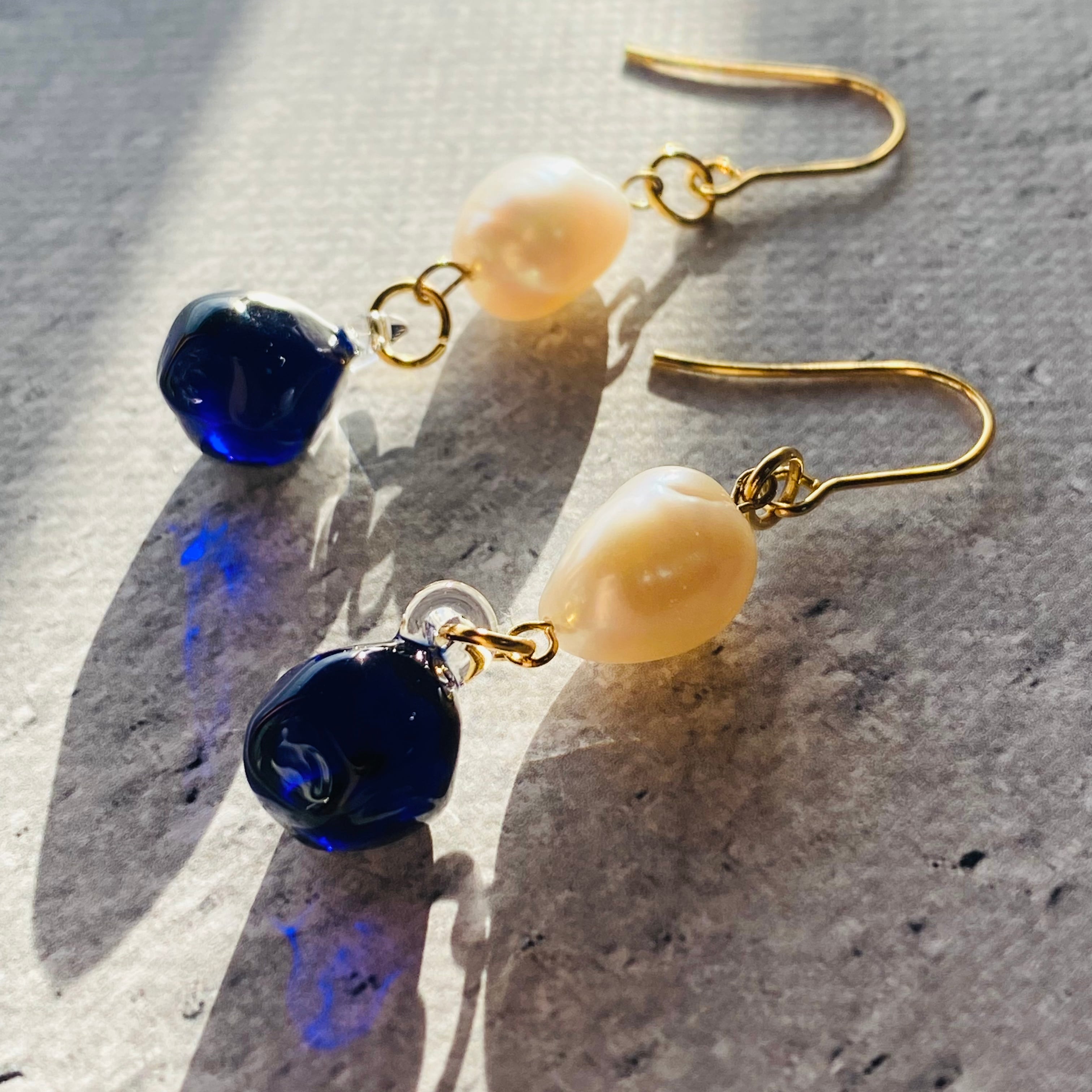 ガラスに光が当たると深い青のガラスがキラキラと輝きます。