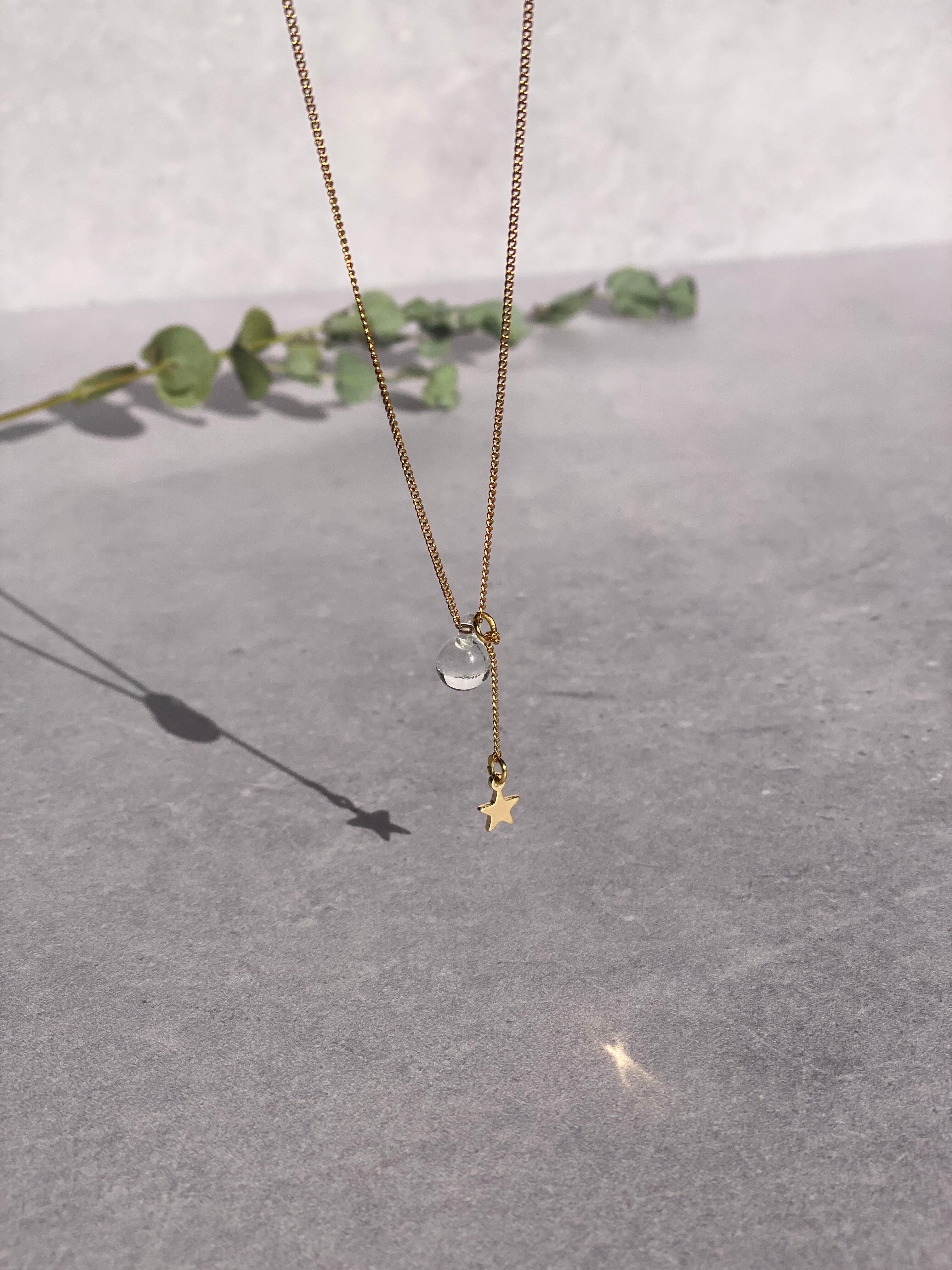 シンプルで上品な一粒ガラスネックレスです。小さな星がキラリと光り、華やかな輝きを放ちます。身に着けるだけで、どんなコーディネートも一気にオシャレに仕上げてくれます。