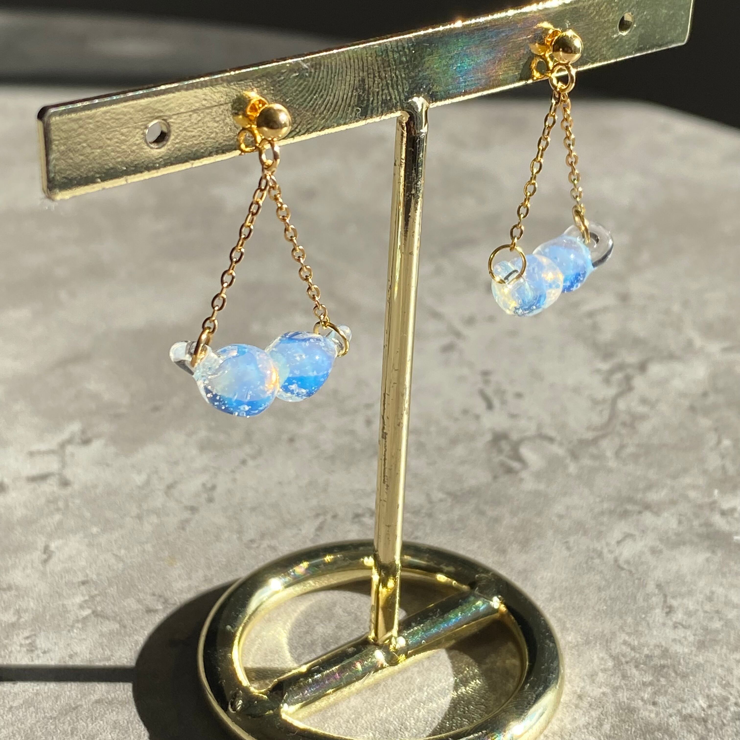 「アサツユ」は、朝露のように小さく、ゆらゆらと揺れる女性らしいデザインのガラスアクセサリーです。キラキラと輝くその姿は、まるで朝の光を浴びているかのよう。透明感のあるガラスが、さまざまな表情を見せてくれます。日常のコーディネートに華やかさを加え、特別な日にもぴったりです。どんなスタイルにも合わせやすく、あなたの魅力を引き立ててくれます。